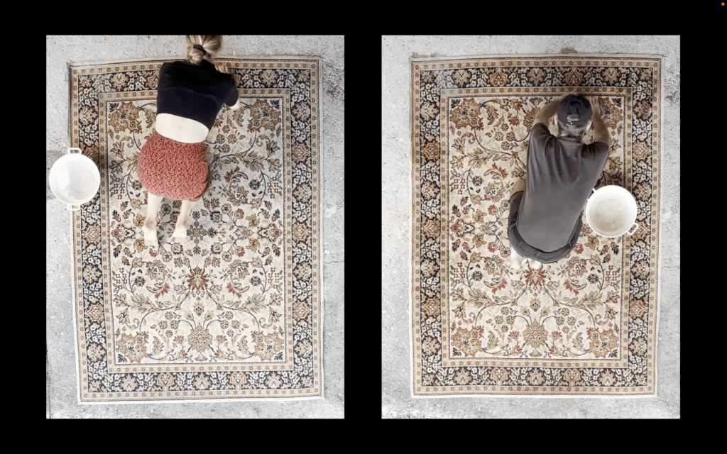 Making a home by cleaning the rug is a meditative process that connects mind and body in the peaceful act of kindness to the ground and taking care of our surroundings.